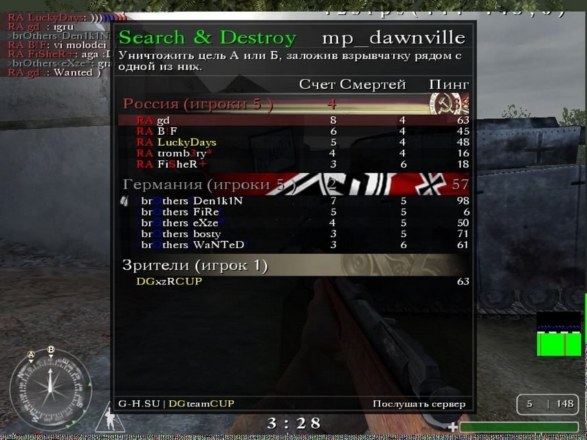 | И так, немного о финальной игре. Вычеркиванием карт предопределили 2 карты brecourt & daunwille, причём радовались в \"конфе\" больше зелёной карте нежели даунвилю. Игра на \"бреке\" показала что данным составом у нас не были наигранны простые элементы что за защиту что за нападение (не знали что-кому держать), да и честно сказать мы на ней уже давным давно не играли (не для кого не секрет что брек наша коронная карта) тогда как соперник её уже давно играет на кланварах. Дали бой, причём начиная за нападение нас попросту расстреливали в итоге боевая ничья с аналогичным счётом с обеих сторон 6-4, 4-6. Дунвиль был начат с выигранного баш-раунда , что оказалось не маловажным событием потому как он предопределил сторону удобную для нас а именно защита, в итоге не без ошибок и не без нервозности взяли первую сторону 7-3 (17-13). За нападение оставалось лишь взять 4 очка, что в принципе нам удалось, благодаря рейдам через площадь* (центральная точка на карте). У соперников выделю игру Denikina, особенно защита на бреке. За себя (noobashi) скажу - что игра не шла, сказалось то что выложился больше на другом принципиальном кланваре против д`ганз, в финальной же игре всё шло мимо и не туда. Игра держалась на Максиме, Жене и Серёге (так же Паша не подвёл заменив меня на последней стороне 2 карты). Бывает такое что если у тебя не получается что-то у соклановчев найдётся второе дыхание подстраховать тебя или выложится вдвойне, за что им и спасибо. |