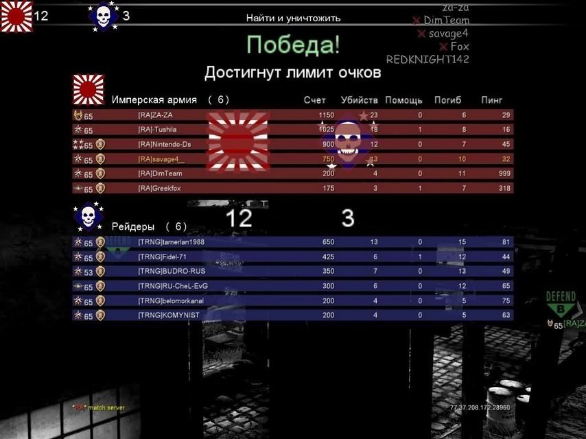 | Не ожидали мы такой реакции на нашу игру с ХП 50 % со стороны TRNG.... Сослаться на идиотскую фразу Центрального, что мы химичим с настройками))). Парни видимо не пользуются RCONTOOL. Покажите как можно нахимичить в RCON в пользу одной команды. Мы например не знаем. Если TRNG привыкли использовать ХП 30 то это не идет ни в какое сравнение с 50 ХП. С таким ХП надо уметь убивать, а не халявные киллы получать стоя на респе. В общем TRNG покинули матч, отказавшись играть 2- карту. И они согласились на ТП. Я им предлагал переиграть матч на стороннем сервере с 50 ХП. Они сказали, что не хотят нас знать и играть тем более...Прескверно! |