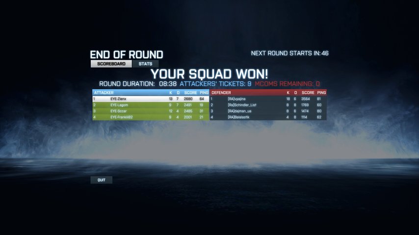 | сервер: | http://battlelog.battlefield.com/bf3/ru/servers/show/3a95a7fc-f497-421f-8252-8426368eb218/Multiplay-Red-Army-Team-Server/ | ||||||||||||||||||||